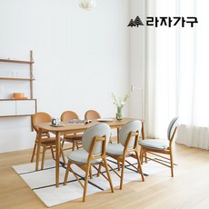 라자가구 쿠키 6인 1800 원목 식탁 세트 의자형, 오렌지브라운