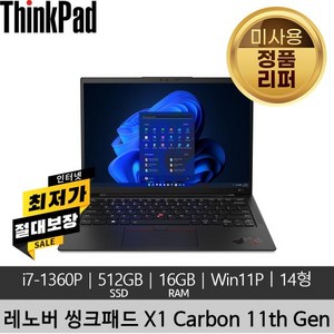 레노버 씽크패드 ThinkPad X1 Carbon 11th Gen i7-13세대 16GB 512GB SSD 400nits Win11 Pro 미사용 리퍼 노트북